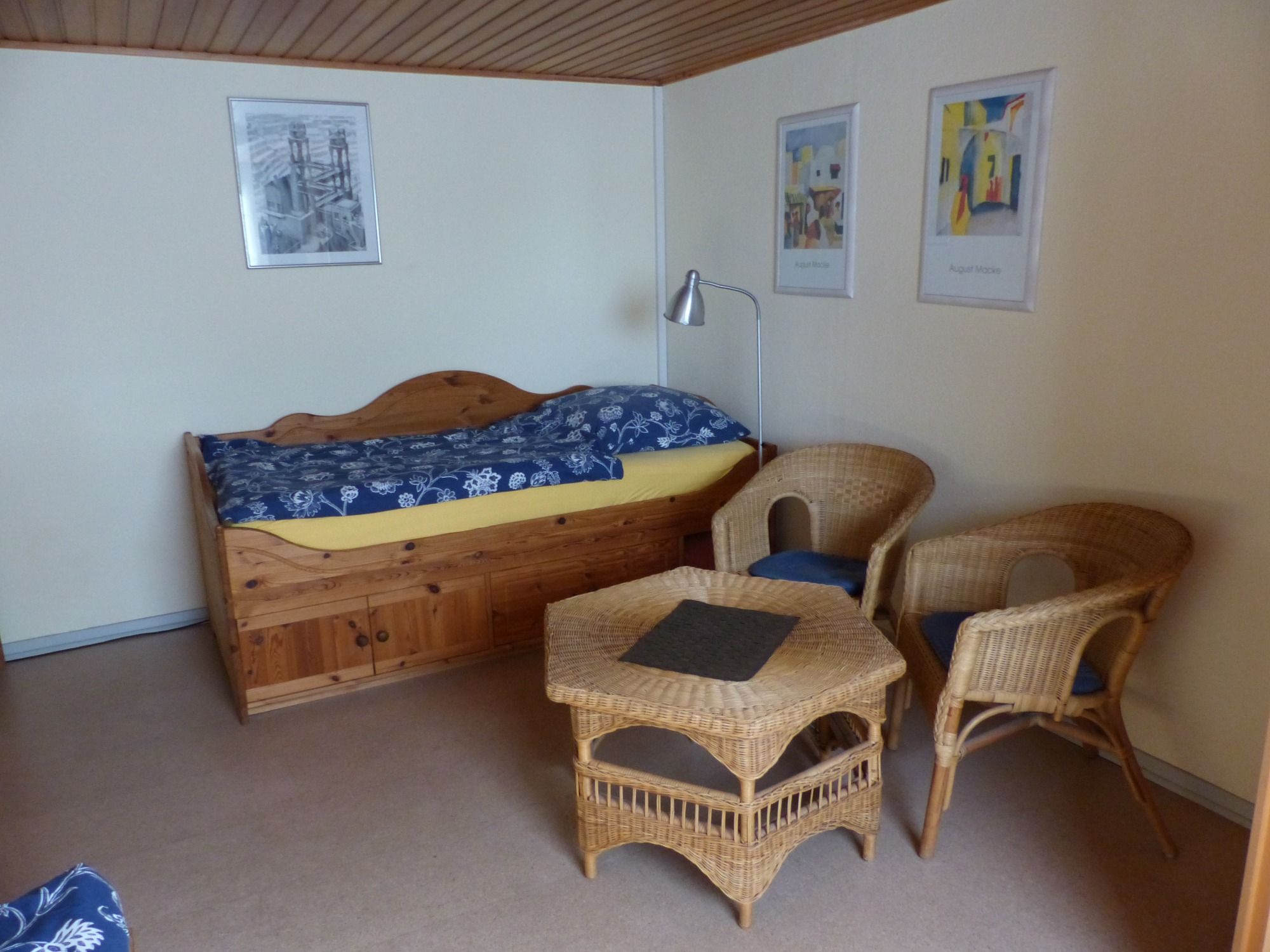 In unserer Wohnung ist Platz für 4 Personen in zwei Zimmern und jeweils einzelnen Betten. Wahlweise können im Schlafzimmer zwei Betten zu einem Doppelbett zusammengeschoben werden.